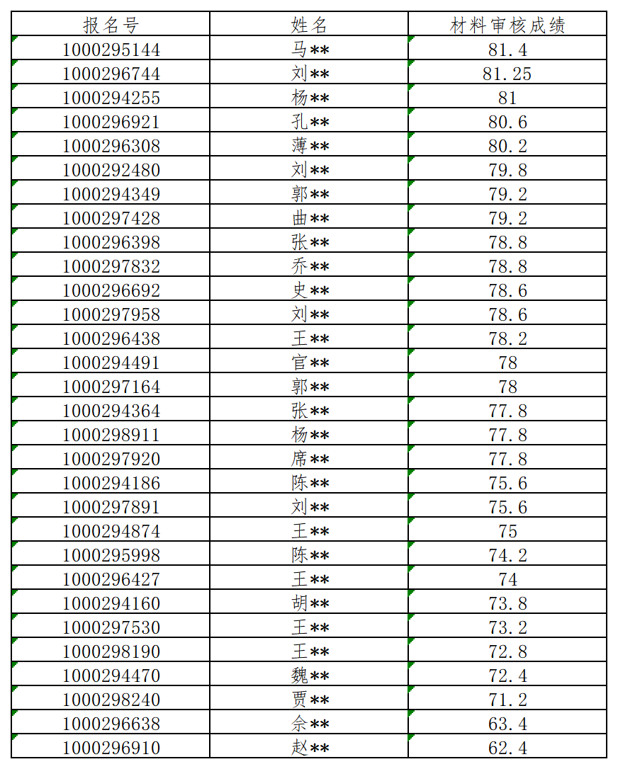 对考生的申请材料进行审核,现将材料审核成绩及名单公布如下:
